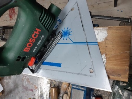 Van de kartonnen mal is nu de aluminium onderplaat voor het zadel gemaakt.