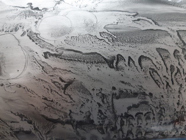 In het kader van “wie wat bewaart heeft wat”. De stukje gaas zijn afkomstig van het filter van een afzuigkap. Het gaas is er met een tweecomponentenlijm in gezet. Het geheel wordt zwart gespoten.