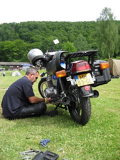 Mijn eerste motor was een Honda CB 350 Four uit 1976. Dat zal begin jaren ’90 geweest zijn toen dat nog niet klassieke spul voor de sloopprijs wegging. Daarna nog een erbij voor de onderdelen, maar die was natuurlijk net te mooi om te slopen dus hup een derde erbij en zo begon de hobby met de CB Four’s. Samen met een aantal bekenden heb ik rond de eeuwwisseling de Honda CB Four Club gestart waar ik nog steeds lid van ben en af toe aansluit bij een weekend of toertocht.