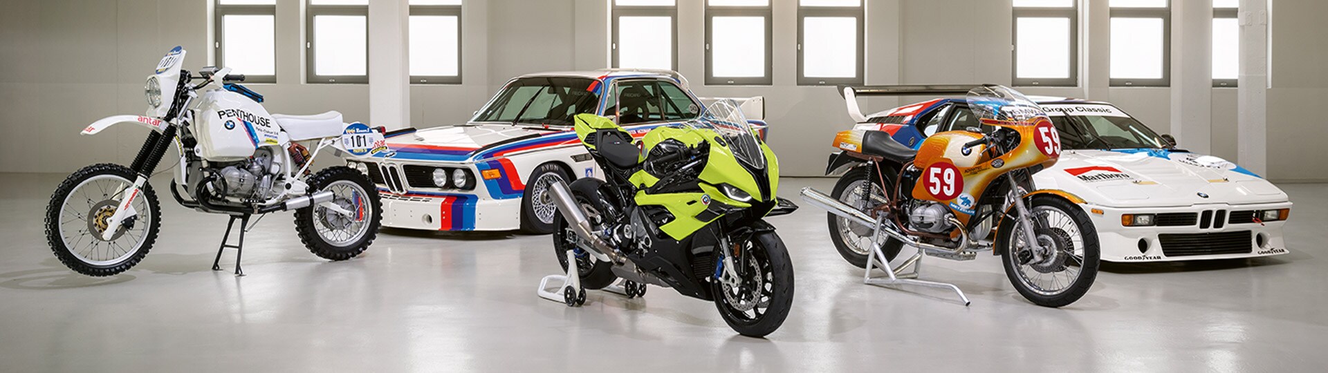 Maar ook buiten de gebaande paden zijn de BMW M kleuren vertegenwoordigd op BMW motorfietsen. Bijvoorbeeld op de BMW GS fabrieksmotoren waarmee Hubert Auriol en Gaston Rahier begin jaren tachtig de Parijs-Dakar Rally domineerden. Als geen andere BMW motorfiets tot nu toe, draagt het M RR 50 Years M-model dit historische motorsport-DNA in zich. Wees er snel bij: deze unieke motor kan alleen tussen 21 mei en 30 november 2022 besteld worden.