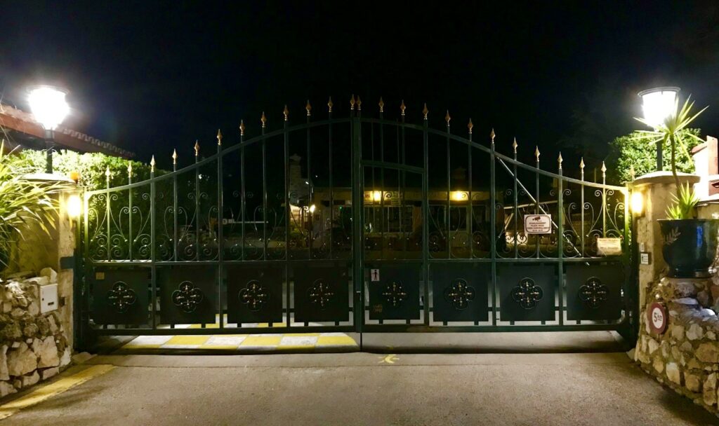 Enfin, rond 23:00 uur kom ik bij de camping en … sta voor een héél gróót gemeen gesloten tweedeurs Duits smeedijzeren hek van een paar meter hoog en wel tien meter breed. Het is elf uur geweest. Dusss … is de campong dicht, vergrendeld, afgesloten, sperrzeit!