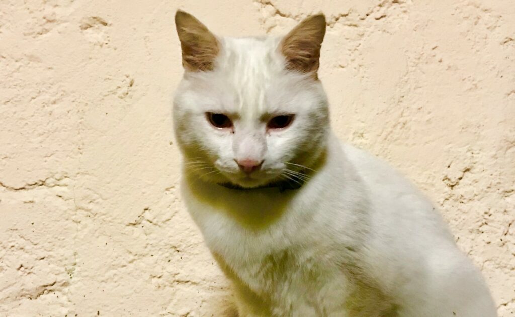 De poes kijkt mij vanachter het hek hoopvol aan. Zij wil best even geaaid worden. Nou heb ik een klein beetje geluk. Ik ben namelijk niet zo dik. Das overigens een kwestie van niet teveel eten. Dat helpt.