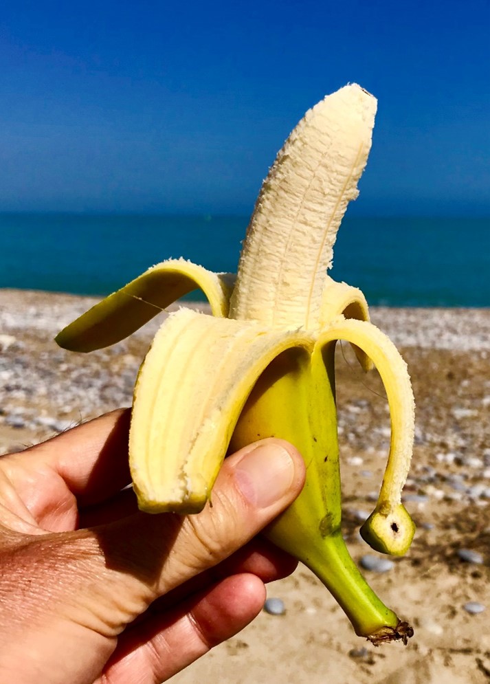 Mijn ontbijt scoor ik in de supermarkt. Hier verkopen ze ook bruin stokbrood en lekkere sapjes. Ik sla gelijk wat appels, bananen en tomaten in. Allemaal tegen de scheurbuik. Ik neem ook brood en kaas mee voor de lunch. Ik heb geen idee welke voorzieningen er op het strand zijn.