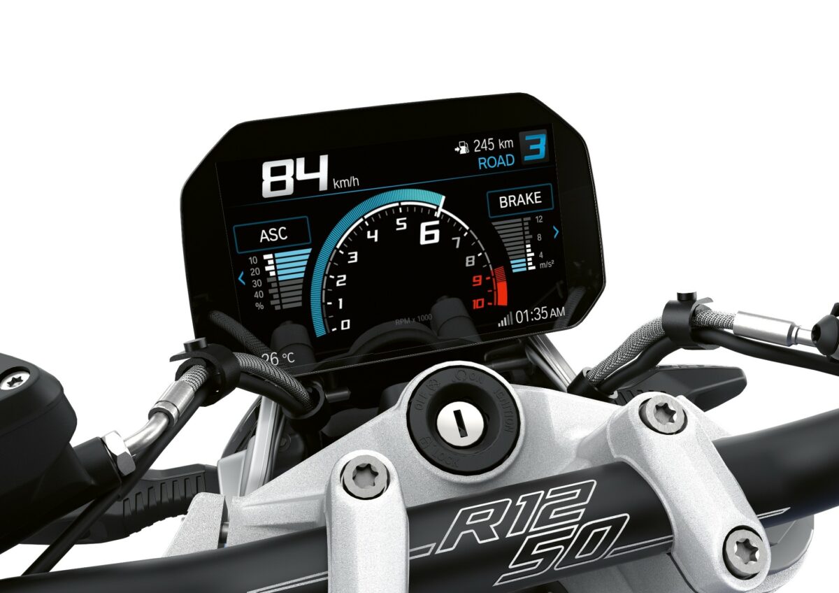 Net als voorheen is de nieuwe BMW R 1250 R uitgerust met een TFT-kleurendisplay met geïntegreerde pijlnavigatie en uitgebreide connectiviteit. Het systeem biedt uitstekende leesbaarheid, duidelijke menustructuur en een slim, geïntegreerd bedieningsconcept. De rijder kan kiezen tussen aangepaste schermweergaven voor verschillende doeleinden, waaronder het ‘Sport’ Core Screen, dat realtime informatie geeft over de huidige en maximale hellingshoek, evenals controle-interventies van bijvoorbeeld ABS Pro of DTC.