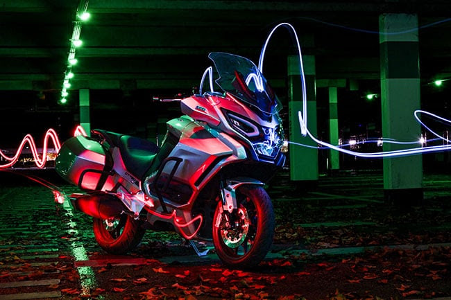 Luxe is standaard: in het dashboard zit een 12,3” TFT-scherm met telefoonconnectiviteit, navigatie via Carbit Ride, verwarmde handvatten en zadel (vijf standen), keyless start. Camera’s voor en achter zorgen ervoor dat je ten alle tijden kunt filmen en foto’s nemen. Die transfereer je moeiteloos naar je geconnecteerde smartphone. Ook de bandenspanningscontrole(TPMS) en elektrisch bediende tankdop behoren tot de standaarduitrusting.
