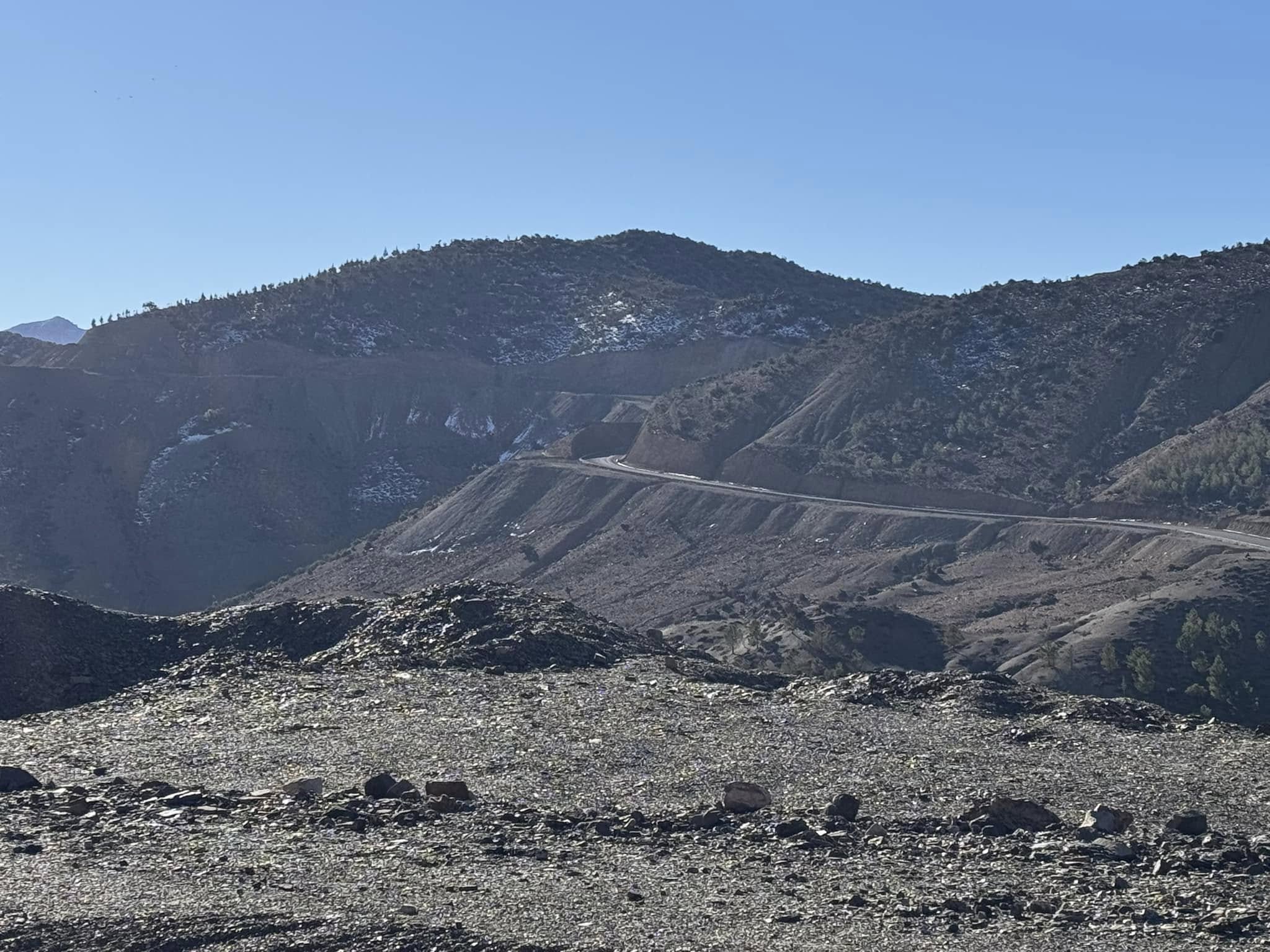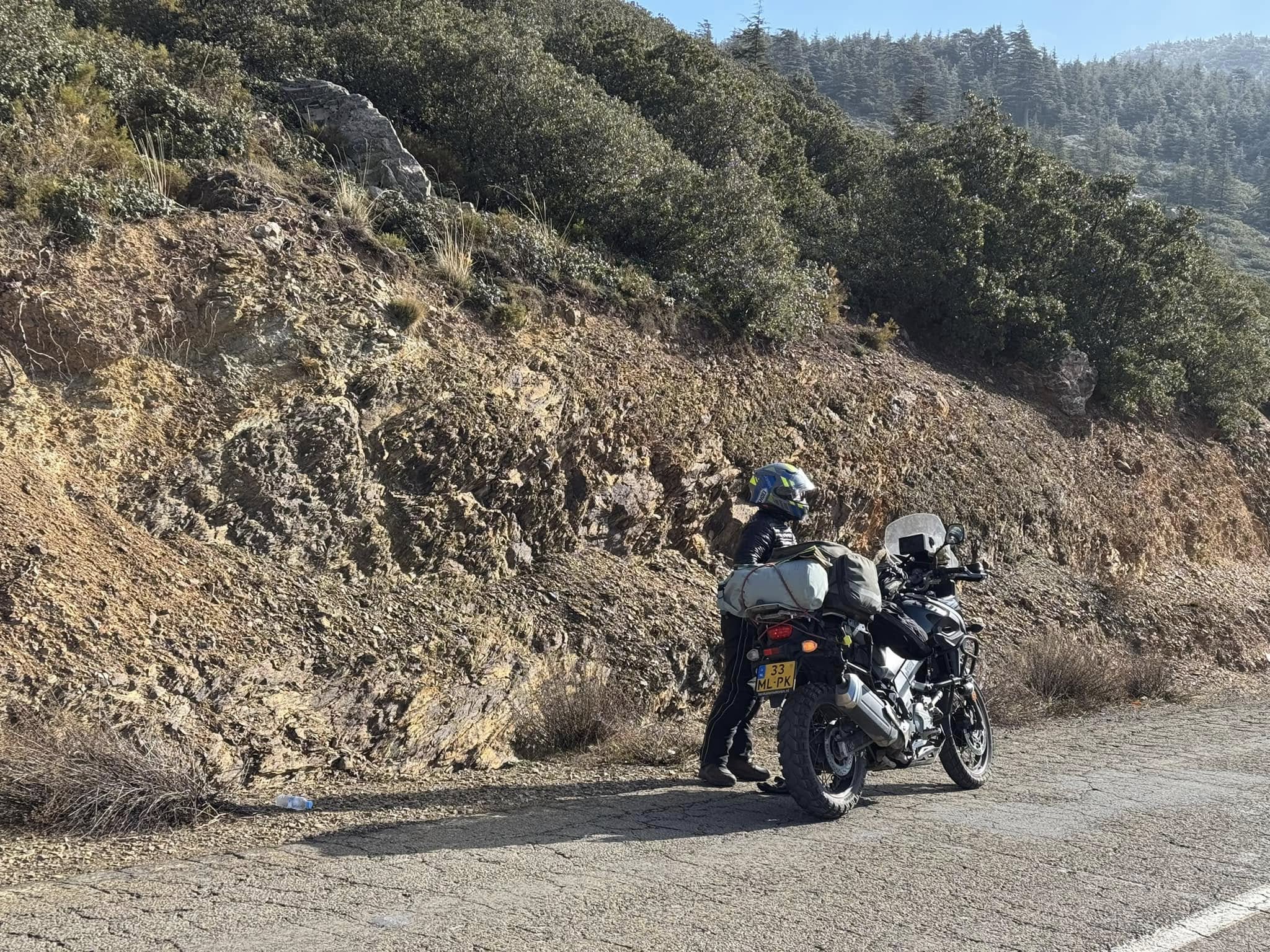 Eenmaal in de bergen werd het feest. De omgeving is schitterend en de weg is goed en slingert omhoog naar 1700m. Een strakblauwe lucht en een temperatuur oplopend tot 25°C maakte het feestje compleet. In de middag zagen we ook nog drie gazellen. Helaas gingen ze er te snel van door om ze te kunnen fotograferen. Dit, grotendeels door mensen verlaten gebied, is echt een paradijs voor motorrijders. Je moet er wel rekening mee houden dat op dit traject vrijwel geen restaurants zijn en je dus je eigen lunch moet meebrengen.