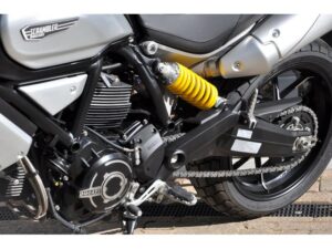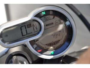 Het betreft hier het tweede type. Uitgevoerd in stemmig zwart, sportuitlaat, open koppeling, achterlicht met knipperlichten in 1, seatcover (duo zadel zit erbij) en een donkere kuipruit.
