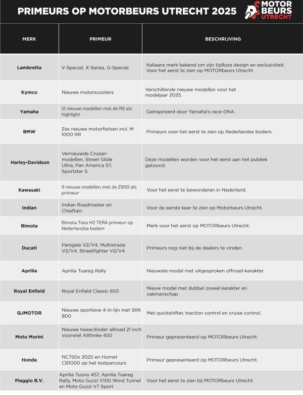De 39ste editie van MOTORbeurs Utrecht 2025 is vorige week zondag succesvol afgerond. De organisatie kijkt met trots terug op een bruisend evenement, vol met zeer tevreden reacties van zowel exposanten als bezoekers. Dit jaar trok één van de grootste consumentenbeurzen van Koninklijke Jaarbeurs ruim 90.000 bezoekers. Ruim 325 exposanten wisten motorliefhebbers te inspireren met een uitgebreid aanbod van nieuwe en gebruikte motoren, diverse motorclubs, stuntshows en een uitgebreid aanbod van kleding.
