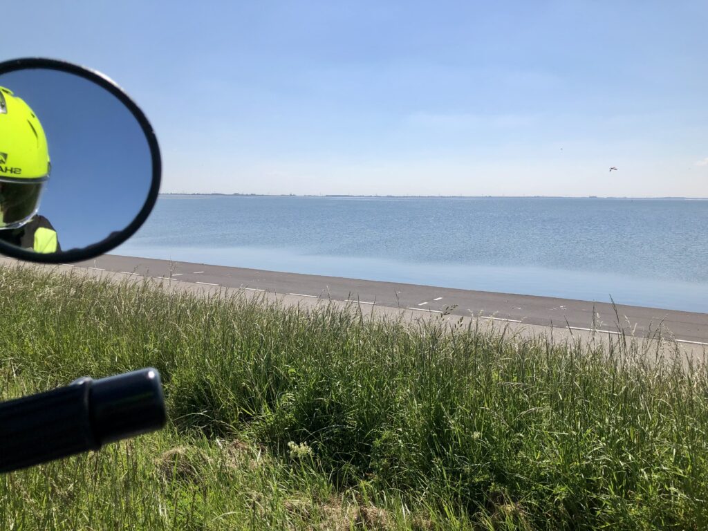 Dan merk je trouwens pas hoe vaak je in je rechter spiegel kijkt. Ongelooflijk hoe je dat ding dat mist. Thuis gekomen had ik mij meteen voorgenomen om die zaterdag even bij mijn trouwe motorgarage langs te gaan om een nieuwe spiegel te bestellen.
