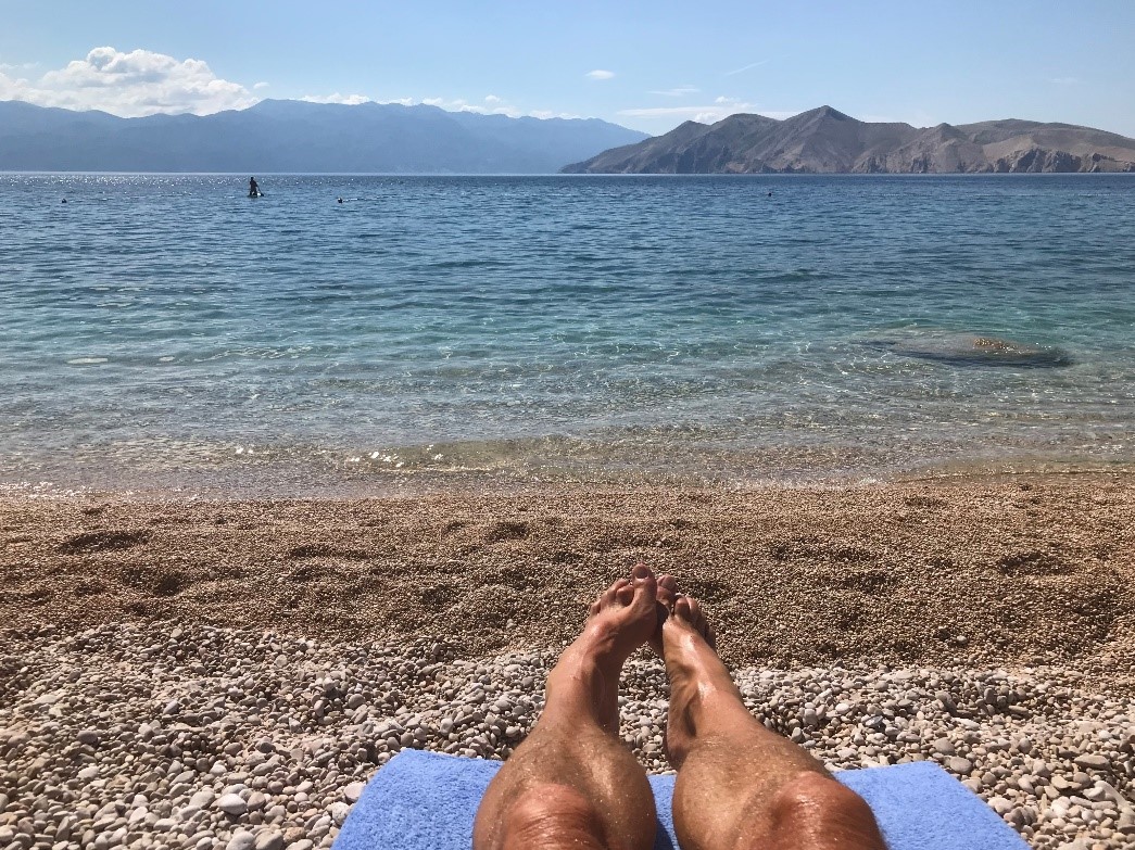 Ik ga normaal liever naar een rustig zandstrand met wat meer lebensraum, maar als ik niet eerst op de motor wil stappen, dan zijn er verder hier geen alternatieven. Voor een paar dagen is dit prima. Ik pas mij gewoon aan met ’wat’ er op dat moment is. Dan heb ik een makkelijker leven, heb ik ondertussen geleerd.