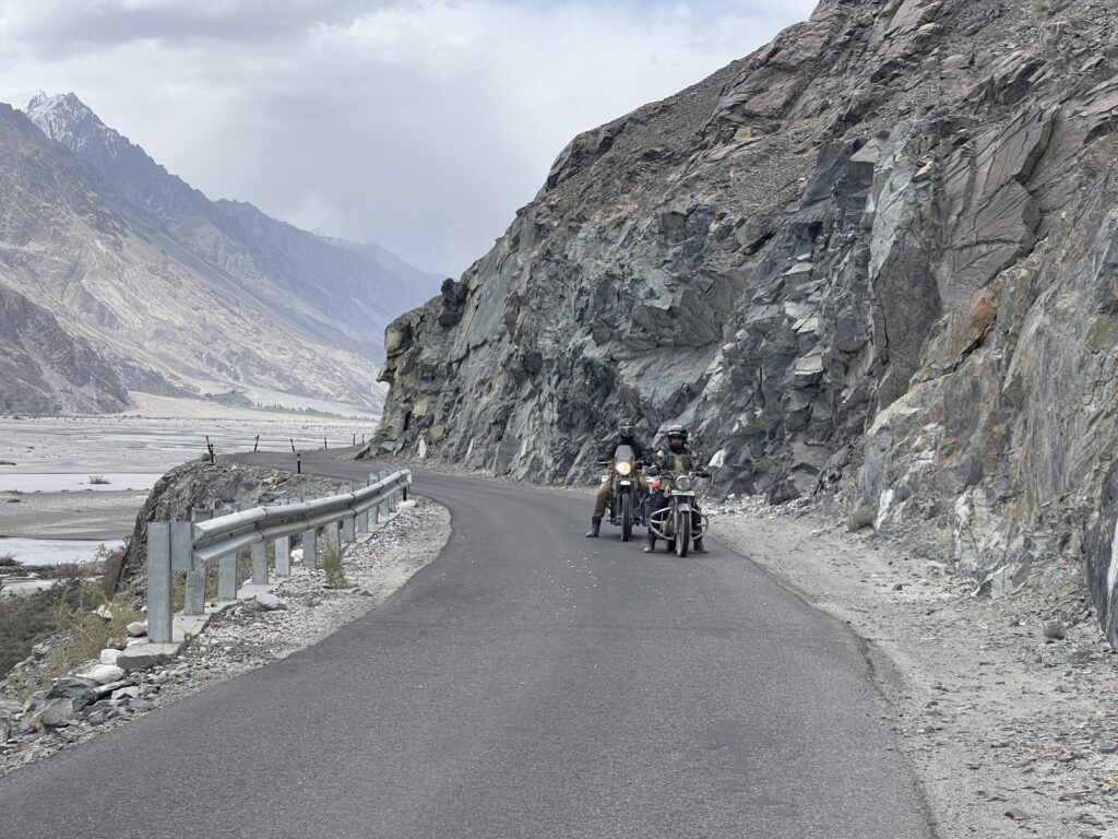 Na de pas rij je de Nubra Valley in, daar was het druk. Het was vakantietijd in Delhi. Ook omdat het in Delhi erg warm was, gingen veel mensen naar de bergen om wat verkoeling te zoeken. Toen wij uit Delhi vertrokken was het er 49ºC. Veel mensen gebruiken er taxis en die rijden erg wild en als motorrijder, sta je onderaan de pikorde.
