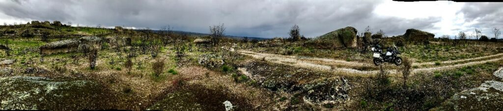 Ik vertrek uit Campo Maior en rijd al snel door een prachtig natuurgebied. Het is het nationale park ‘Parque Natural da Serra de S. Mamede’. De natuur varieert enorm. Het is Genieten met een grote G! Onderweg moet ik stoppen omdat ze een hele zooi stieren verweiden. Een heel bosje lullen op reis, filosofeer ik…