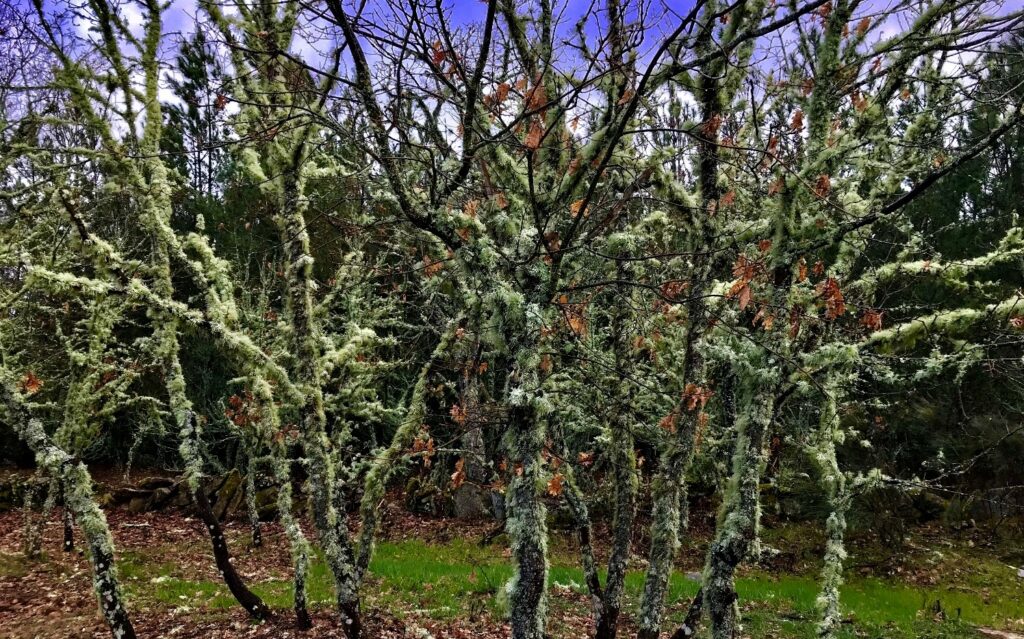 Ik rijd door Rochoso en verwonder mij over de werkelijk enorme zwerfstenen. Jôh, sommige stenen zijn groter dan mijn huis. Níet normaal. En ik zie prachtige harige bomen. Het is koud en het regent nog steeds, maar ik moet en zal jullie laten zien wat ik gezien heb. Prachtig!