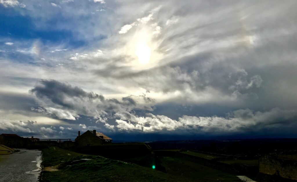 Er is bewolking en ik zie de zon. Dikke waterdruppels liggen op de koffers van mijn motorfiets. Het heeft vannacht geregend. Of … het zijn dikke tranen van de BMW omdat ik haar vannacht moederziel alleen en in haar blootje op straat heb laten staan. Achgossie.