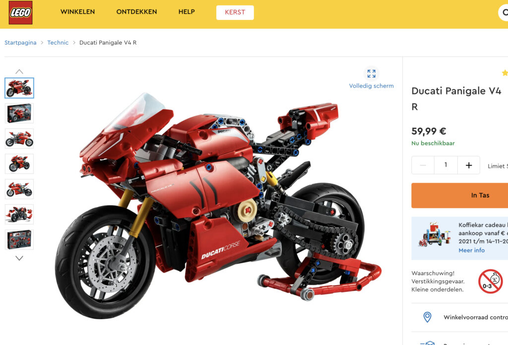 Als het dan lukt om in de maand december deze Ducati Panigale V4 in elkaar gezet te krijgen, dan laten we graag een volgende Lego-uitdaging zien. Van een iets andere orde, maar, het blijft Lego.