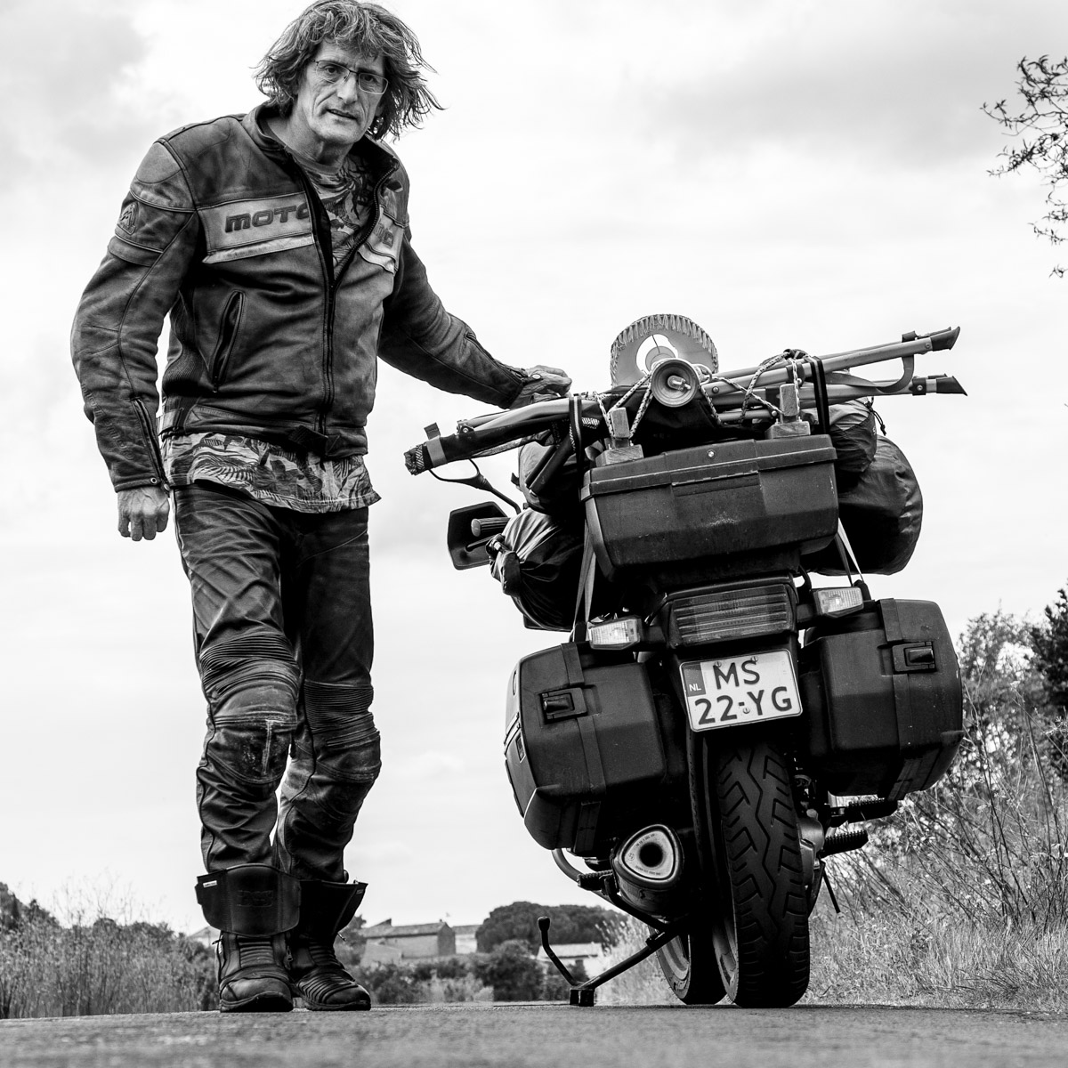 Hij houdt er enorm van de veelal uitgestorven kleine bergwegen waar, eenmaal De Duitser aan de kant geparkeerd, het gewoon doodstil en wonderschoon is. Hij zal in al het toergeweld vaak eventjes onderweg stoppen, met draaiende motor een foto nemen en weer door gaan. Het mondt uit in een mooie serie platen. Zie zijn Facebookpagina.