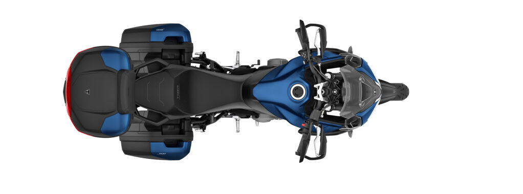 De Triumph Tiger Sport 800 Tour is verkrijgbaar in twee opvallende nieuwe kleurstellingen die zijn dynamische design extra in de verf zetten. Matt Cobalt zorgt voor een moderne, krachtige uitstraling met diepe blauwtinten, gecombineerd met Matt Sapphire Black en matte gouden accenten op cockpit, kuip en zijpanelen. Voor rijders die een levendigere look verkiezen, biedt Carnival Red een rijke, glanzende afwerking met Sapphire Black details en dezelfde gouden accenten voor een uitgesproken energiek voorkomen. Beide kleurstellingen lopen naadloos door in de bijpassende zijkoffers en topkoffer, voor een volledig geïntegreerde premium uitstraling.